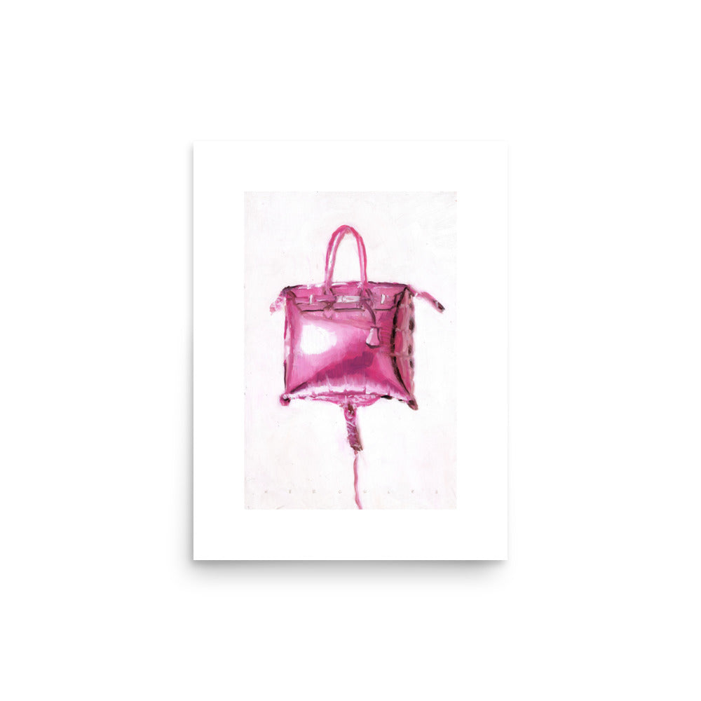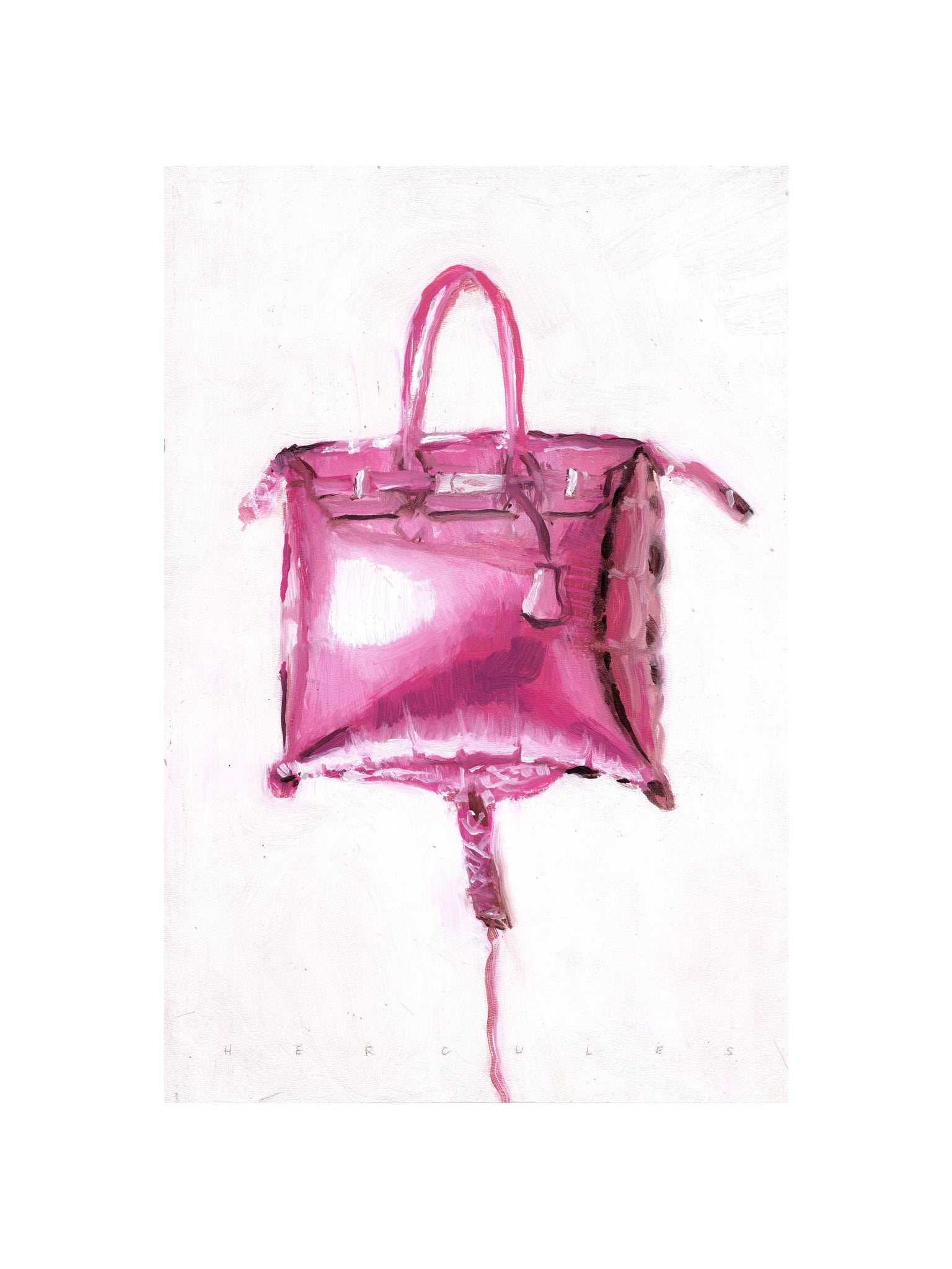 Bring a touch of elegance to your space with Pink Luxury, a 12"x16" oil painting print by contemporary artist Hercules. This bold piece portrays a vivid pink designer handbag, rendered with expressive brushstrokes that highlight glamour, femininity, and modern lifestyle. Its striking color and minimal background create a statement artwork full of energy and sophistication.